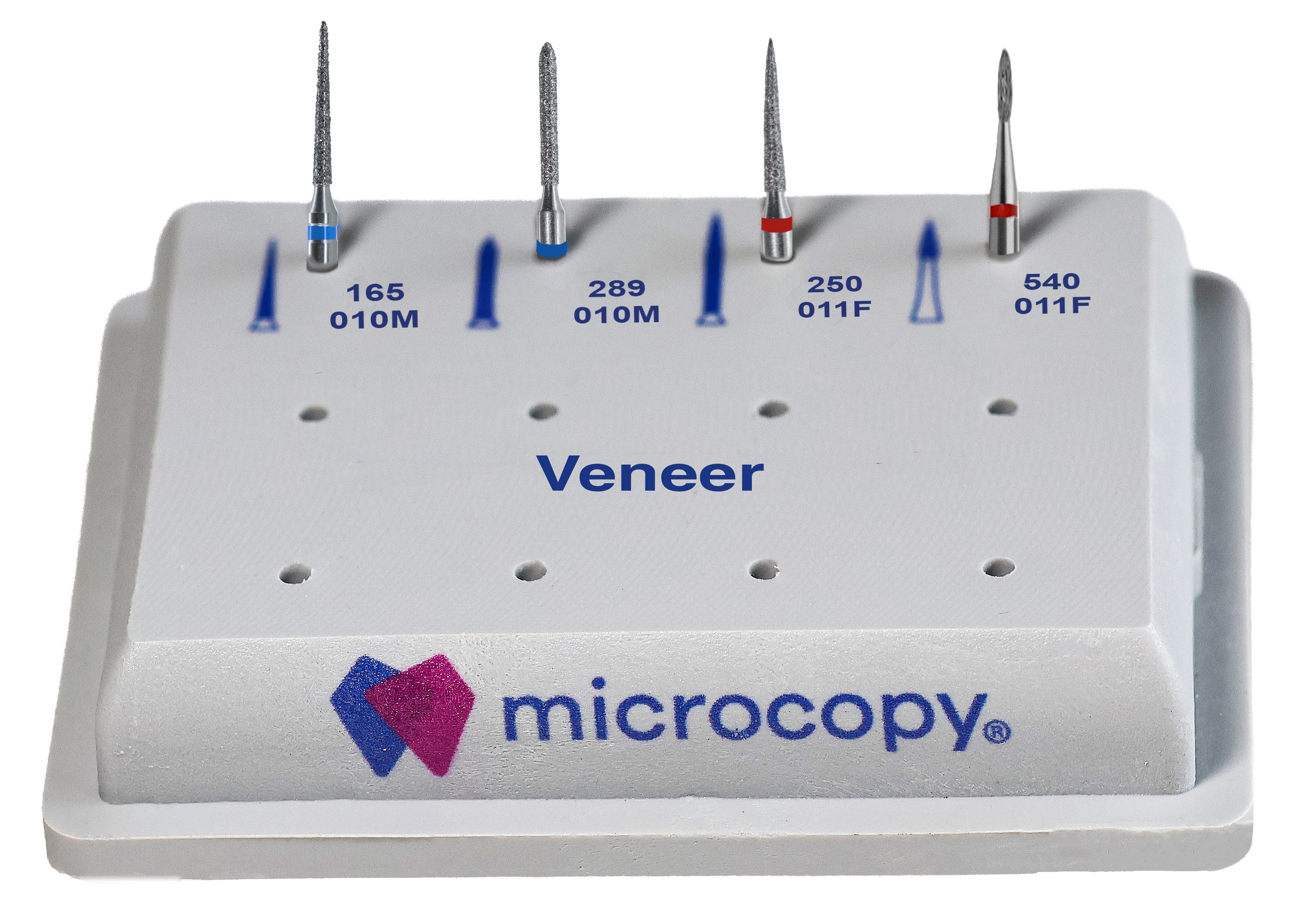 Our veneer kit features four Microcopy NeoDiamond burs selected by Dr. Roberto Turrini, a world-renowned expert in aesthetic dentistry.